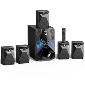 1000W Surround System 5 Wired Satellite Audio Speakers 8 inch Subwoofer 5.1/2.1 Channel Home Theater Deep Bass Support HDMI ARC Optical Bluetooth Karaoke Input1000W peak power home speaker system offers two channels: 5.1 and 2.1 channel. This is a good starter surround sound for a true home cinema setup. Just plug in my devices and start testing different songs, movies, and video games. This unit can produce the crisp sounds and deep bass. It really feels like you’re at the movies! The surround sound helps video games feel atmospheric.Bluetooth for the sub is very easy to connect. No cutting out or lag.