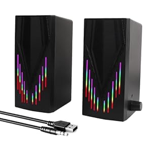 Black Computer Speakers, Speakers for Computer Desktop PC with Colorful Dynamic RGB Lighting, USB Powered Gaming Speakers with 3.5mm Aux Cable for Monitor Laptop TabletImmerse Yourself in Premium Sound: Experience the full range 2.0 channel enhanced stereo core of these Desktop Speakers, delivering impeccable surround sound for your entertainment activities, whether it’s watching movies, playing games, or listening to music.