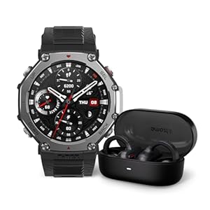 Bundle of Amazfit T-Rex 3 Rugged/Military Smart Watch 48mm, GPS (with Privacy), Offline Maps,Black + Amazfit Up OWS Bluetooth 5.3 Headphones, Open Ear Wireless Earbuds with Easy Touch Control