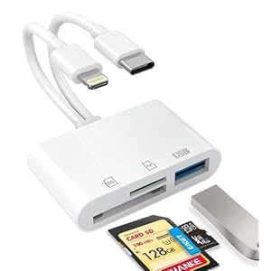 SD Card Reader for iPhone, iPad, USB C and Lightning Dual Port SD Card Adapter, Memory Card Reader for Camera Adapter, Support SD, Micro SD, USB 3.0, No App Driver Required