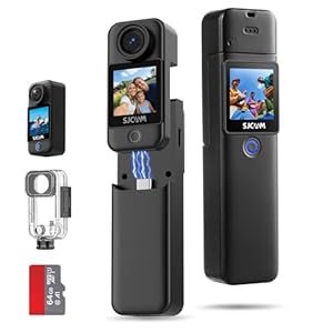 SJCAM C300 Pocket Travel Action Camera 4K,7Hour Power,154° Wide FOV Video Recording,6-Axis Stabilization,Dual-Touch Screen Body Camera,30M Waterproof,Vlogging YouTube Live Streaming,Black 64G Card