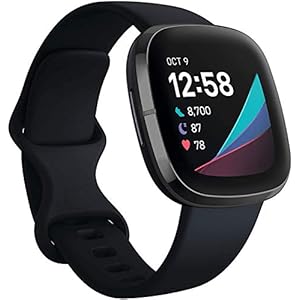 Fitbit Sense Health & Fitness Smartwatch W/GPS, Bluetooth Call/Text, Heart Rate SpO2, ECG, Skin Temperature & Stress Sensing (S & L Bands, 90 Day Premium Included) International Version (Graphite)