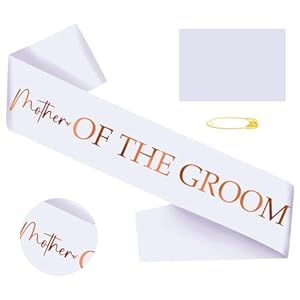 Generic Mother of The Groom Sash with Rose Gold Foil, White Bachelorette Party Sash for Bridal Shower Engagement Supplies Gifts Wedding Accessories for Groom to Be’s MotherHand Wash Only