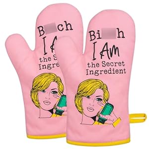 Funny oven mitts set of 2; Funny baking gifts for women who love to bake; Cute oven mitts for women, female chef, baking lover, cooking mom, mother in law, wife, grandma, daughter, sister, sister in law, best friend, BFF, bestie, neighbor, hostess, girlfriend, fiancee or any people who like to cook; Funny pink kitchen accessories for kitchen, funny cooking gifts, baker gifts for women
