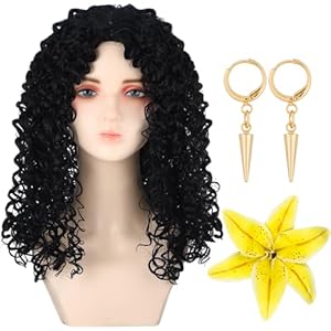 Package List: this set of power character cosplay accessories includes 3 dress up elements: 1 carefully designed black curly wig, 1 striking gold cone earrings, and 1 symbolic yellow flower; This is designed to help people restore the appearance of the character and enhance the restoration and recognition of the overall shape