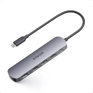 Anker USB C Hub, 7-in-1 Multi-Port USB Adapter for Laptops, 4K@60Hz USB C to HDMI Splitter, 85W Max Power Delivery, 3xUSBA & C 3.0 Data Ports, SD/TF Card, for Type C Devices (Charger Not Included)Sleek 7-in-1 USB-C Hub: Features an HDMI port, two USB-A 3.0 ports, and a USB-C data port, each providing 5Gbps transfer speeds. It also includes a USB-C PD input port for charging up to 100W and dual SD and TF card slots, all in a compact design.
