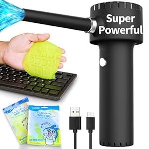Compressed Air Duster, Electric Air Duster, Protable 40000 RPM Cordless Dust Blower, 6000mAh Battery Air Can Duster, Powerful Computer Keyboard Cleaning Air Spray, Rechargeable Electric Canned Air【EXTREMELY POWERFUL ELECTRIC DUSTER】ABVOT Electric Duster ranks the first on the market in virtue of one thing, that’s “Never ever compromise to quality!” The spray nozzle we made is perfectly smaller, but comes out extremely powerful point of force up to “2.5OZ”. To make it even stronger, high power motor of 40000RPM adopted, so that ABVOT keyboard cleaner can produce super powerful thrust of air and do more daunting cleaning jobs that all other brands cannot even have a try!