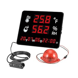 Precise Monitoring: This device accurately displays temperature (°F), humidity (%), date, and time on a large LED screen. Readability is excellent with Red light on the screen. With 2M(6.5FT) cable external sensor it have real-time and accurate performance.