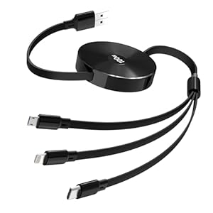 100W Retractable Multi Charging Cable, 3 in 1 Charging Cord with USB-C/Lightning/Micro USB Retractable Charger, PD 5A Fast Charging Cable for Multiple Devices iPhone iPad Galaxy Tablet Mac (3.6ft)3-in-1 Retractable Charging Cable for All Devices: This versatile retractable multi charging cable features three built-in connectors (USB-C, Lightning, Micro USB) in one sleek design, making it the ultimate multi charging cable solution. Perfect as a retractable car charger or travel companion, it supports A-C (100W), A-L (20W), and A-Micro USB (10W) configurations. The USB-C port alone enables charging, 480Mbps data transfer, and CarPlay.