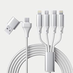 Wide Coverage: Certification applies to iPhone, Android, and more devices.MFi-certified Lightning ports for iPhone 14/13/12/11/X/8, iPad Air/Mini, AirPods.Type-C for Galaxy S10/S9, Pixel, Huawei, Xiaomi. Micro USB for Samsung S7/S6, Kindle, Bluetooth devices.One cable replaces 4 separate cords, compatible with 99% of smartphones/accessories.