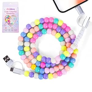 Rainbow Phone Charging Cord for Girls: Adorable colorful bear beaded 3.3FT (1m) charging cable,vibrant and lively candy colors,acrylic material, smoothly polished and odorless.The usb a to type c cable is a perfect for gifting to to women and girls$12.99