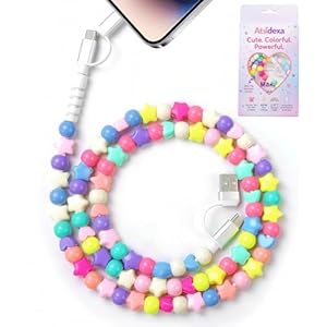 4-in-1 Beaded Charging Cable, Metal Design, Nicely Packed, 60W Fast Charging, MFi Certified, Cute Colorful Cable, Gift for Girls, Compatible with iPhone, iPad, AirPods, Galaxy, and Moreš One Cable for All Devices: No more hunting for the right charger. This 4-in-1 cable supports all connectors, working with iPhone, iPad, AirPods, Samsung Galaxy, Google Pixel, and more. Perfect for gifting without worrying whether it will fit their phone
