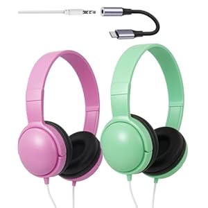 2 Pack USB c Headphones, Dual Plug Design (USB-C & 3.5mm), Kids Headphones for School, Tablet & iPad, Adjustable Headband, Lightweight Over-Ear Headphones for Boys and Girls (Blue & Green)[Dual Plug Design for Universal Compatibility] – No more adapter hassle! Comes with a built-in USB-C plug and a 3.5mm audio jack to fit most modern devices ā iPads, Chromebooks, Samsung tablets, and laptops. This Headphones with usb c Perfect for home learning or travel.