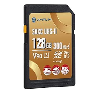 Amplim 128GB V90 UHS-II SD SDXC Card, 300MB/S 2000X Read/Write Lightning Speed Performance, Extreme Read, U3 Secure Digital Memory Storage for Professional Photographer and Videographer