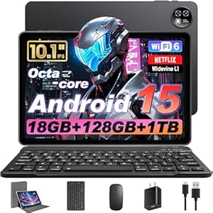 Android 15 Tablet 10 Inch with Case, 18GB RAM 128GB ROM, 1280 x 800 IPS HD Widevine L1, Octa-Core, 1TB Expandable, WiFi 6, BT5.4, Dual Camera 5MP+8MP, 6000mAh, GPS, Dual Speakers[Powerful Performance And Optimisation] The latest high-performance processor and high-capacity memory configuration ensures smooth multitasking and fast application response time.Android 15 system further optimises resource management to provide a more stable and efficient user experience.