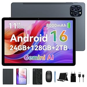 Android Tablet, 11 inch Android 16 Tablet, 8000mAh, 24GB RAM 128GB ROM 2TB Expand FHD Touchscreen, 13MP+5MP Dual Camera, Octa-core Processor, Gemini AI, GPS, Widevine L1