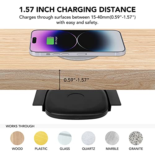 1.57″(40mm) NiiTTER Invisible Wireless Charger, Under Desk Wireless Charger, Under Counter Charging for iPhone 16/15/14/13/12/ Samsung Galaxy S25/S24/S23/S22/S21(Adapter Included)