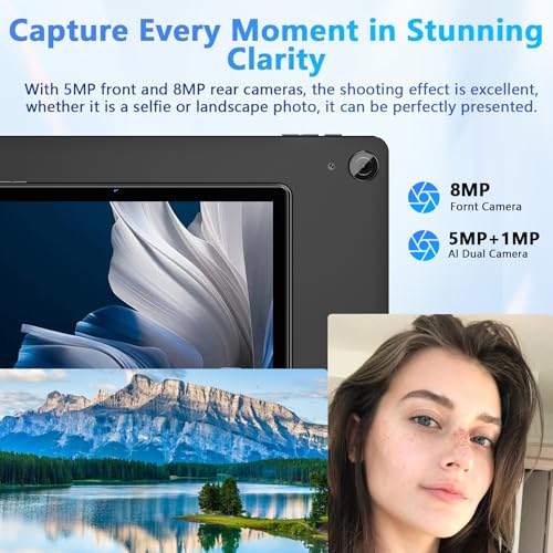 10 Inch Tablet, Android 15 Tablets with 18GB RAM+128GB ROM(Expand to 1TB), Octa Core 1280 * 800 IPS HD Display, 6000mAh Battery, Dual 5MP+8MP Camera, 5G/2.4G WiFi