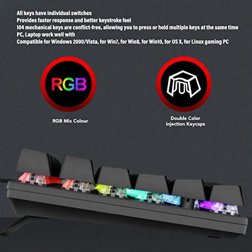 HIGHPERFORMANCE- BLUE SWITCHES: This 104key- mechanical keyboard features blue switches for a even and responsive typing experience, for gaming and typing sessions. linear, toptobottom– switches response times and better keystroke feel.