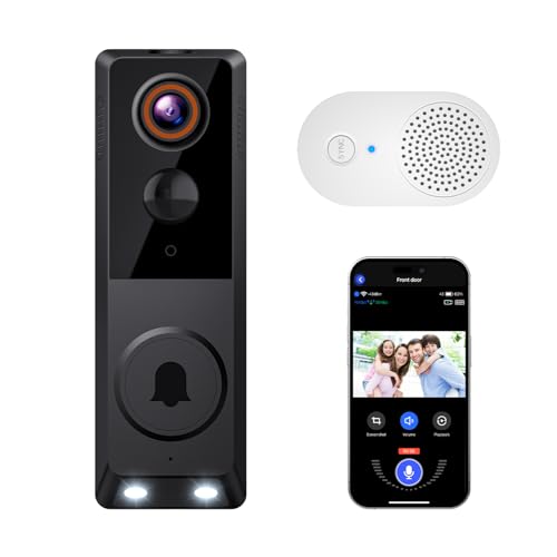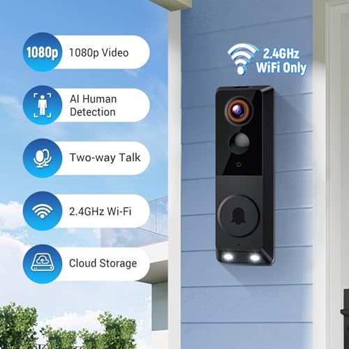 1080P Wireless Smart Doorbell Camera, AI Human Detection, 2.4GHz Wi-Fi Only, Color Night Vision, Two-Way Audio, Battery Powered, Cloud Storage(Sold Separately)