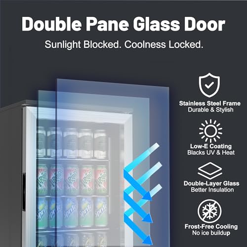 【Efficient Triple-Pane Cooling Technology】Low-E coated triple glass door provides thermal insulation and clear interior view. Keeps your drinks perfectly chilled while reducing condensation and energy use.