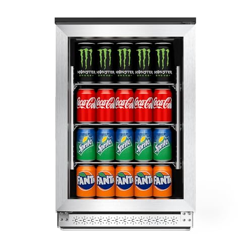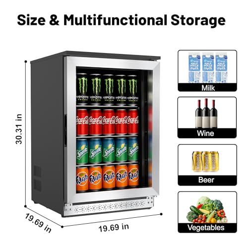 20 Inch Built in Beverage Fridge with Glass Door, Beverage Refrigerator Cooler 120 Can,UnderCounter Fridges or Freestanding,Quiet ≤39 dBs,Blue LED Light Cooler for Bar, Home, Office