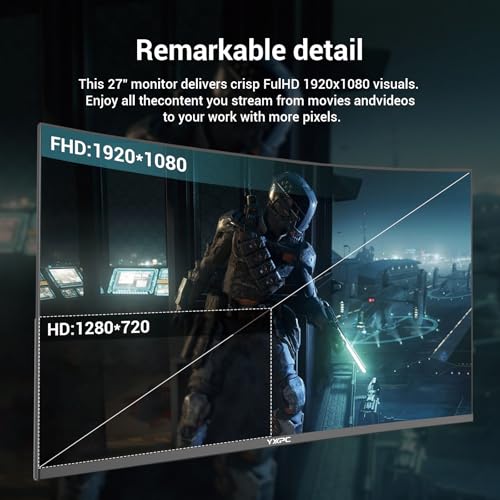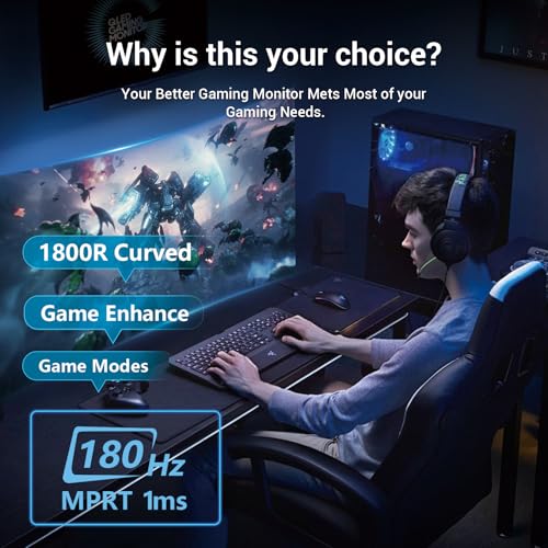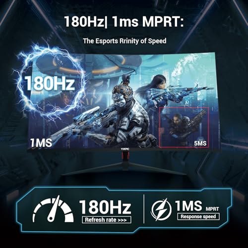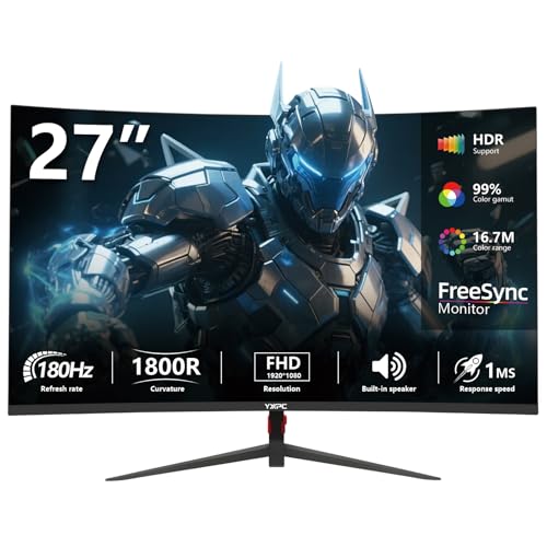 180Hz Curved Monitor: Experience ultra-smooth gameplay with a 27 inch curved monitor featuring a high-resolution display, and a 180Hz refresh rate. With FreeSync technology, it eliminates screen tearing and stuttering for seamless visuals, offering crystal-clear video playback and exceptional image quality. Perfect for gamers seeking the ultimate visual experience