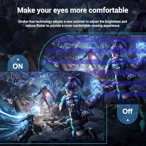 Comprehensive Eye Care & Versatile Connectivity:Play and work comfortably for extended periods with Flicker-Free and Blue Light Reduction features. Equipped with multiple HDMI ports, DisplayPort, and built-in speakers for all your connectivity and audio needs.