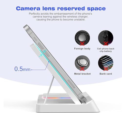 Convenient and Portable Compact Design: The induction charger features a compact foldable design, ideal for daily use at home, on your bedside table, in the office, or on the go. It doesn’t take up much space and allows you to charge your iPhone easily. This wireless charger is very convenient and portable. You can put it in your bag or pocket and take it with you. No matter where you are, you can enjoy the convenience of wireless charging.