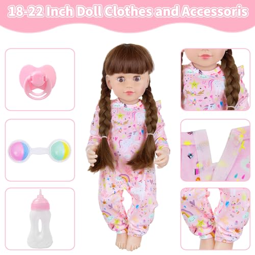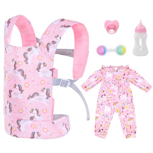Package Included: There are doll carrier and clothes set in the package. Pink Doll Carrier *1, *1, Pink Jumpsuit *1, Ring Toy *1, Pacifier *1 and Feeding Bottle *1. Meeting your baby doll and 18 inch doll dressing up need. (Dolls Are Not Included)
