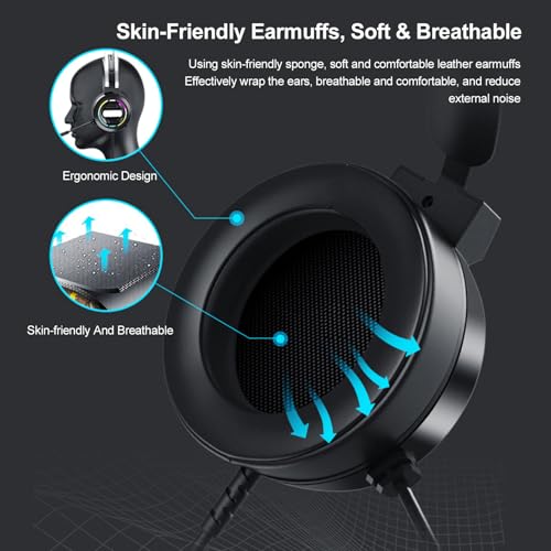 [All-day Comfort] Adjustable headbands, soft ear cushions, and lightweight design provide comfort during long gaming sessions.