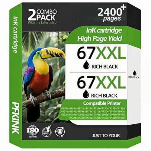 67XXL Black Ink Cartridge Replacement for HP Deskjet 4100 4100e 4152e 4155 4155e Envy 6000 6055e 6055 6400 6458 6458e 6452 6455e Printers (2 Black)