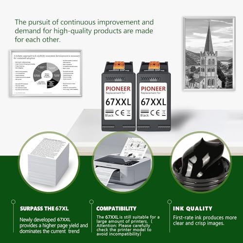 High Quality Printing: PFKink Ink Cartridge 67XXL combo pack adopts high-quality raw materials to minimize the damage of pollution. At the same time, advanced pigment making process technology is adopted to improve the brightness and saturation of color, make the text printing clearer, and make the pattern printing lifelike and vivid on the paper.The printed product will satisfy you