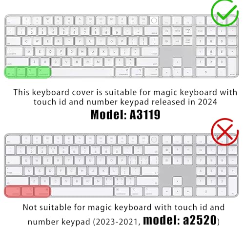 Compatibility: This keyboard protective cover is compatible with iMac M4 magic keyboards with touch id and numeric keypad to be released in 2024. Ensuring precise cutouts for keys and seamless compatibility without hindering functionality. Please note that our product isn’t sponsored or endorsed by the brand it fits, including iMac M4, MacBook Pro/Air.