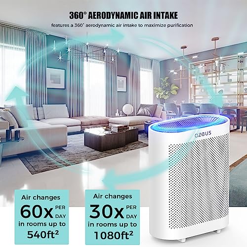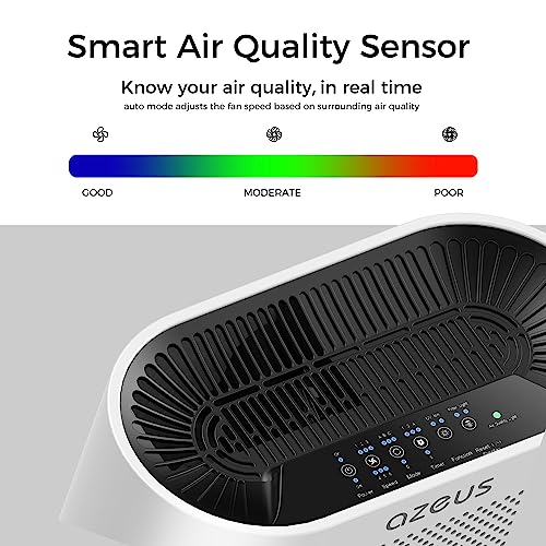 AZEUS True HEPA Air Purifier for Home, Up to 2160 sq ft Large Room, UV light | Ionic Generator | Office or Commercial Filter 99.97% Pollen Smoke Dust Pet Dander Auto Mode Sensor
