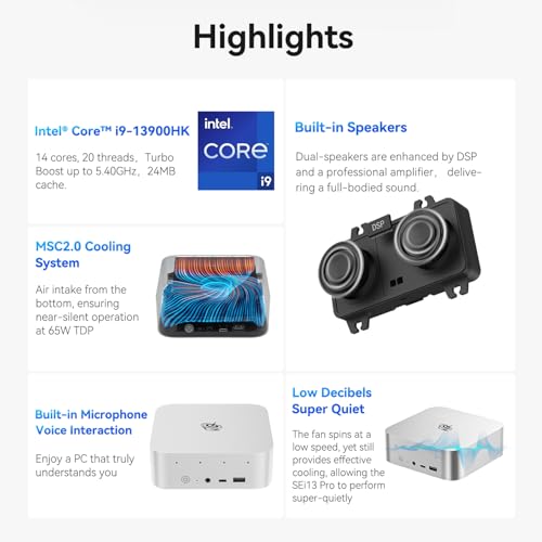 Beelink Mini PC, SEi13 Pro Intel Core i9-13900HK (14C/20T, up to 5.4GHz), 32GB LPDDR5 1TB PCIe4.0 SSD, Mini Desktop Computer Support 4K@144Hz/HDMI/DP1.4/USB-C/Vioce Interaction/Dual Speaker/2.5Gbps