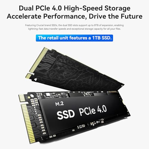 🔥Larger + Faster + Expandable Capacity – 13900HK mini pc comes with Dual channel 32GB LPDDR5 RAM(2 x 16GB, 6000MHz, faster 100% than DDR4). And 1TB M.2 PCIe4.0 2280 Dual SSD, speed is 100% faster than PCIe 3.0 in terms of read and write speed. You can expand the storage up to 4TB each slot. Easier memory upgrades and larger memory, no need to worry about running out of space.