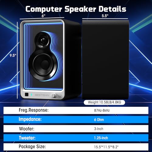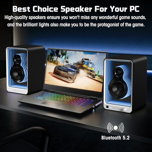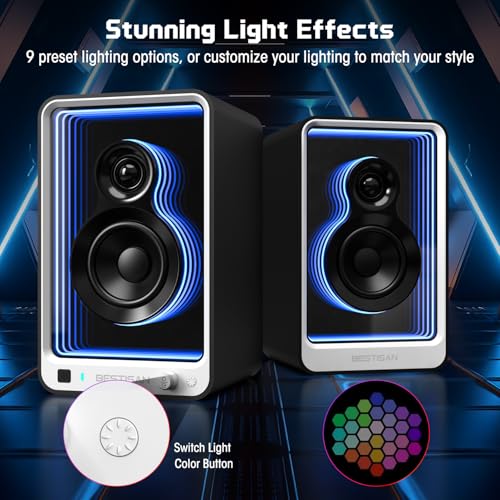 BESTISAN 50W*2 Active Bookshelf Speakers with Dynamic Light Effect, 3″ Bass Computer Speakers with ARC/Optical/RCA/BT 5.2/USB/SUB Out Input for Turntable, PC, TV and Phone.