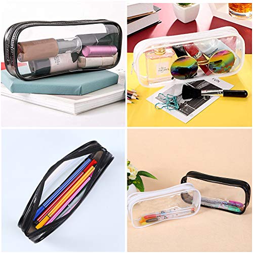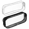 BlingKingdom 2pcs Clear PVC Zipper Pencil Bag Toiletries Exam Pen Pencil Pouch Case Travel Luggage Make up Cosmetic Bag (Black and White)