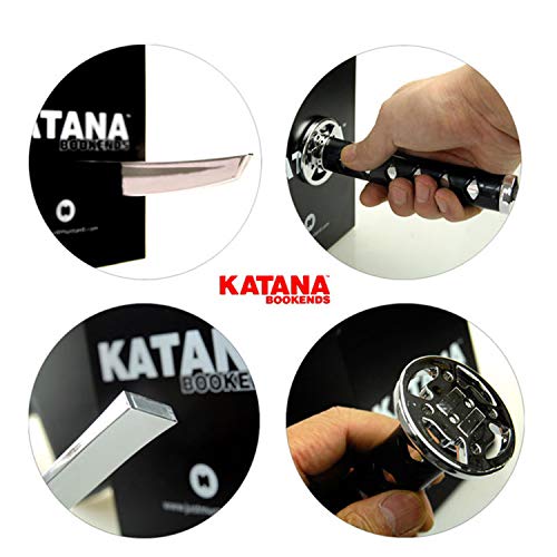 Book Ends Decorative, Modern Metal Funny Unique Black DVD Bookends for Shelves, Katana Book Stopper Holder for Office Home, Desk Gifts Book Stands for Men and Book Lovers