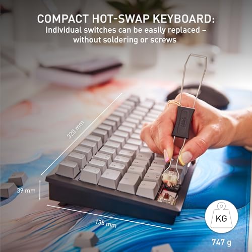 HOT-SWAP SOCKETS The individual switches can be easily removed with the enclosed tool and replaced with other MX switches of your choice. Simply insert the new buttons into the special hot-swap sockets and you’re done. No soldering or screws are required: just snap into place.