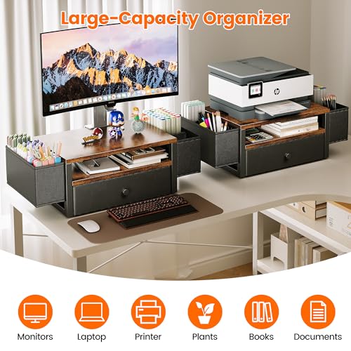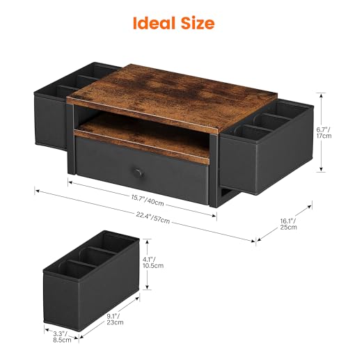 Desk Organizers and Accessories, 3-Tier Computer Monitor Stand Riser with Fabric Drawer & 6 Pen Holder, Office Desk Accessories Workspace Desktop Organizer for Office Supplies, Rustic Brown