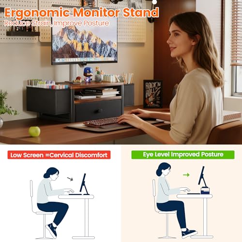 【Elevate Your Comfort】Elevate your monitor to eye level to enhance your work experience. This simple ergonomic adjustment alleviates strain on your neck, shoulders, and back, helping you work more comfortably and efficiently.