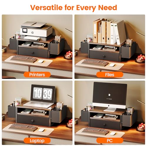 【Sleek & Modern Look】With its refined and sophisticated appearance, this monitor stand not only provides functional organization but also enhances the visual appeal of your workspace. Its minimalist aesthetic adds a touch of professional refinement to any desk, making it a stylish piece of office decor.