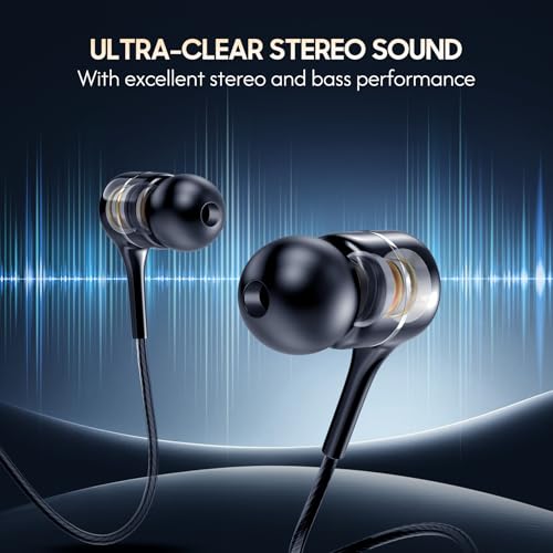 【High-Quality Sound】: The wired earbuds can effectively reduce outside noise and keep the sound in your ears, so the earbuds with microphones of powerful bass drivers, make the sound clearer and three-dimensional, making listening to music a pleasure
