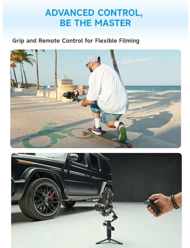 Grip and Remote Control for Flexible Filming: The integrated grip handle provides enhanced ergonomic comfort, which is also suitable for both high and low angle filming. The unique detachable handle design opens up more creative possibilities. lt can be removed and used as a remote control, making it perfect for solo content creators or situations that require long-distance operation