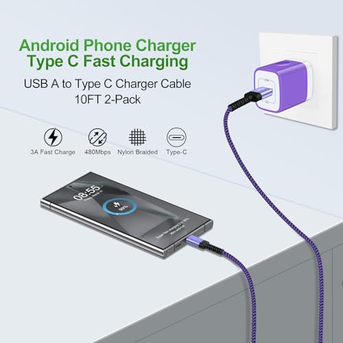 【Fast Charging & Data Transfer】10FT Extra Long USB Type C Cable Android Phone Car Charger Cord supports safe high-speed charging at 3A and data transfer speed up to 480Mb/s, 30% faster than other cable. Data Transfer and Power Charging 2 in 1. 56kΩ resistor provide outstandingly reliable conductivity & stability, protect your iphone 17 pro max 16 plus car carplay charger cord and samsung s25 ultra s25 fe s24 plus a17 google pixel 10 pro xl 9 pro fold 9a 8 charging adapter from damage.