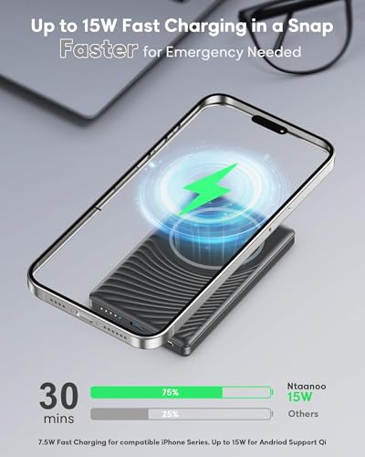 ✨ Ultra Slim Wallet Size Power bank – The lightest and thinnest magnetic power bank for iPhone on the market, less than 1cm thick and weighing only 119g, more than twice as light as a regular 10,000mAh wireless power bank. It can be easily stored in any pocket, and the 5000mAh capacity is enough for daily use! More special designed, you can just snap on and power would auto on, easily charging.Very suitable for any plane check-in, and outdoor adventures like camping, hiking.,etc