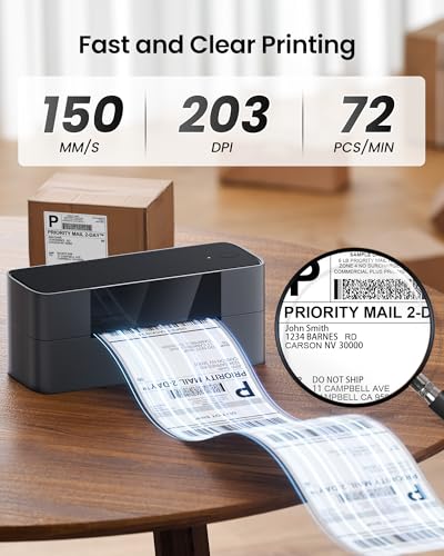 Fast and Clear Printer for Small Business: The Itari 4×6 label printer uses advanced thermal direct printing technology, eliminating the expense of toner or ink. With a print speed of 150 mm/s, it can produce up to 72 sheets of 4×6 labels per minute. The 203 DPI resolution ensures high clarity and precision in your prints. This thermal printer is a time and money-saving solution for all your labeling needs.