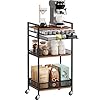K Cup Holder Rack, Coffee Station Organizer for Nespresso Vertuo and K Cup Capsules, Multi-Functional Bar Accessories Organizer With Wheels for Living Room, Kitchen